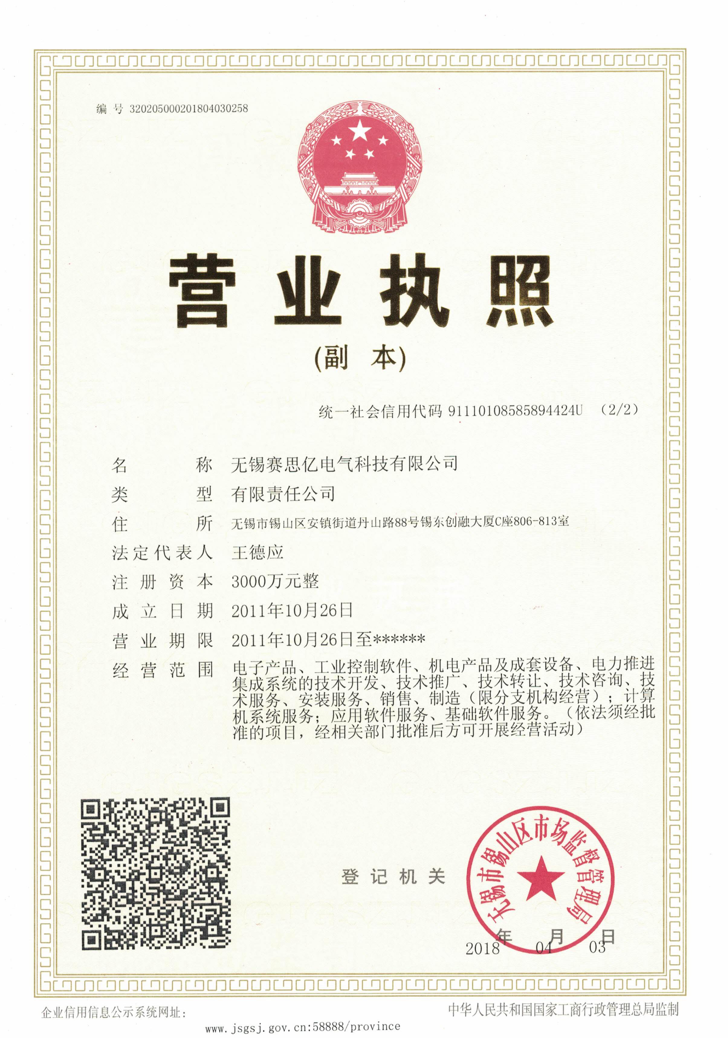 北京賽思億正式更名為“無(wú)錫賽思億電氣科技有限公司”