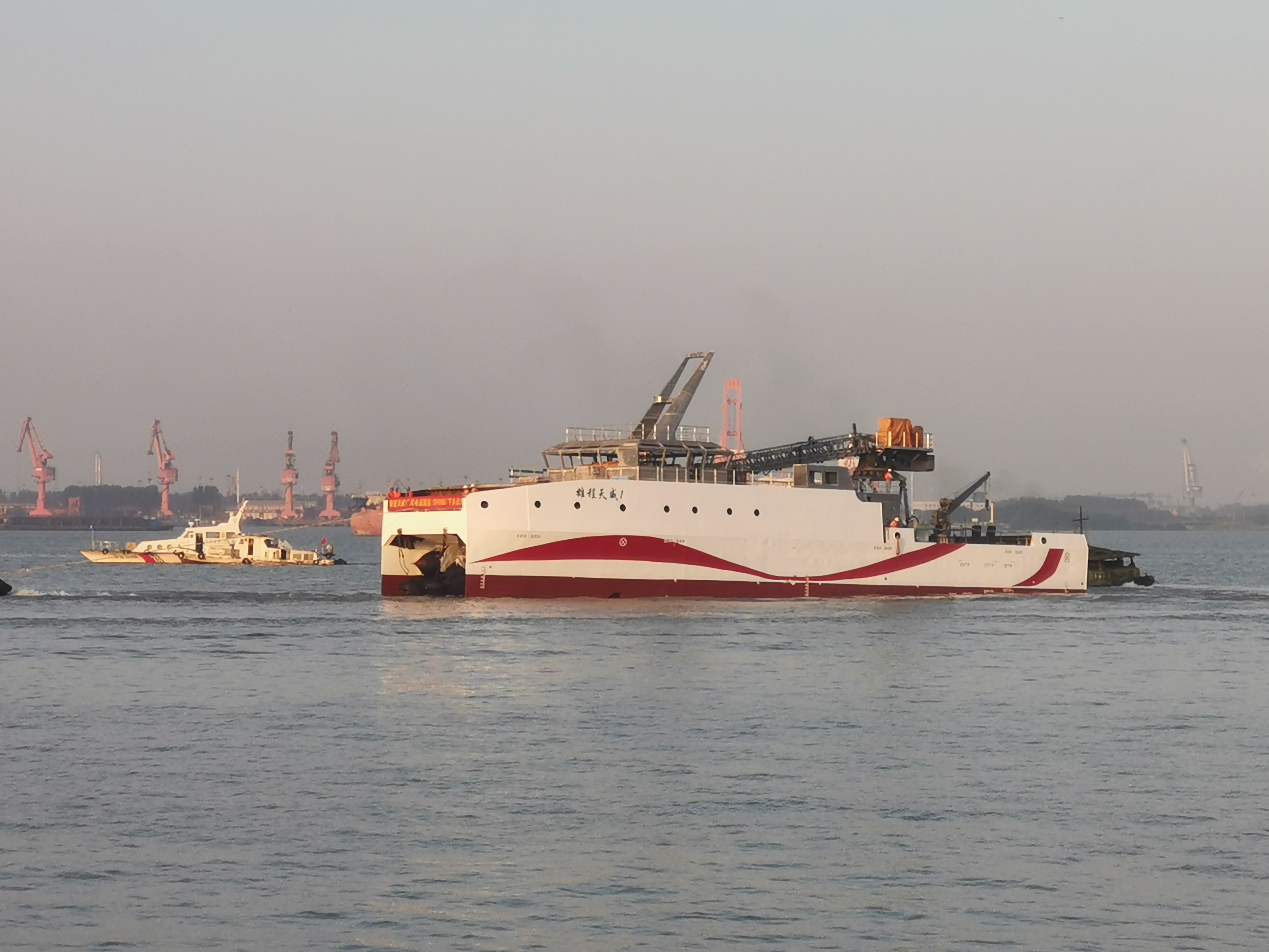 “雄程天威1”號風(fēng)電運維船為雙體船,總長49.9米,排水量約600噸,是目前國內(nèi)先進的創(chuàng)新型風(fēng)電運維船,裝機容量4.8MW,雙舵槳主推,雙艏側(cè)推,配備賽思億直流組網(wǎng)電力推進系統(tǒng)、六自由度波浪補償?shù)浅讼到y(tǒng)和DP-2動力定位系統(tǒng),擁有能在4級風(fēng)海況下進行登乘作業(yè)的能力,穩(wěn)性滿足抗8級風(fēng)的能力,核心設(shè)備實現(xiàn)國產(chǎn)化。