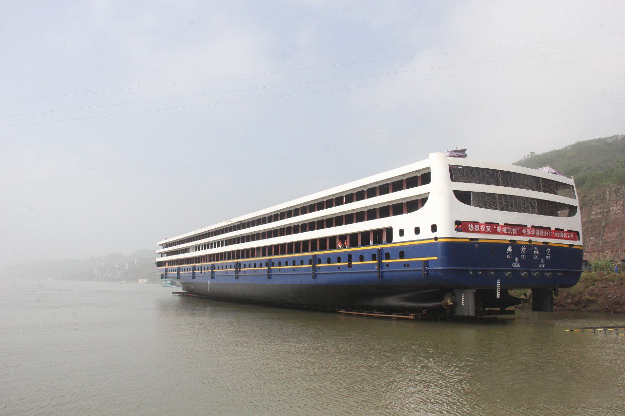 “美維凱悅”游輪總長149.99米,,型寬21.8米,型深4.5米,設(shè)計吃水2.9米,為鋼質(zhì)、雙尾、前傾首柱、雙槳、雙舵、雙電機驅(qū)動的游輪,建成后將是中國內(nèi)河最大游船,主要用于接待國內(nèi)外賓客游覽長江三峽,是長江干線重慶至上海移動的五星級水上酒店,“美維凱悅”同樣采用賽思億直流組網(wǎng)電力推進系統(tǒng),整船裝機容量5MW,直流組網(wǎng)技術(shù)的應(yīng)用在為游客帶來更安靜、舒適的游覽體驗的同時,大大優(yōu)化了柴油機組運行工況,明顯改善船舶氣體排放問題。