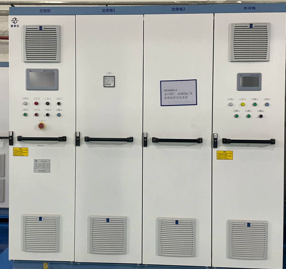 中谷物流18艘4600TEU系列集裝箱船,采用賽思億國產(chǎn)首臺套大功率的軸帶發(fā)電系統(tǒng),軸發(fā)功率1100kW,本次再交付揚子江船業(yè)1船套,并順利通過中國船級社江蘇分社檢驗。截止現(xiàn)在,累計交付揚子江船業(yè)5船套,金陵船廠1船套。