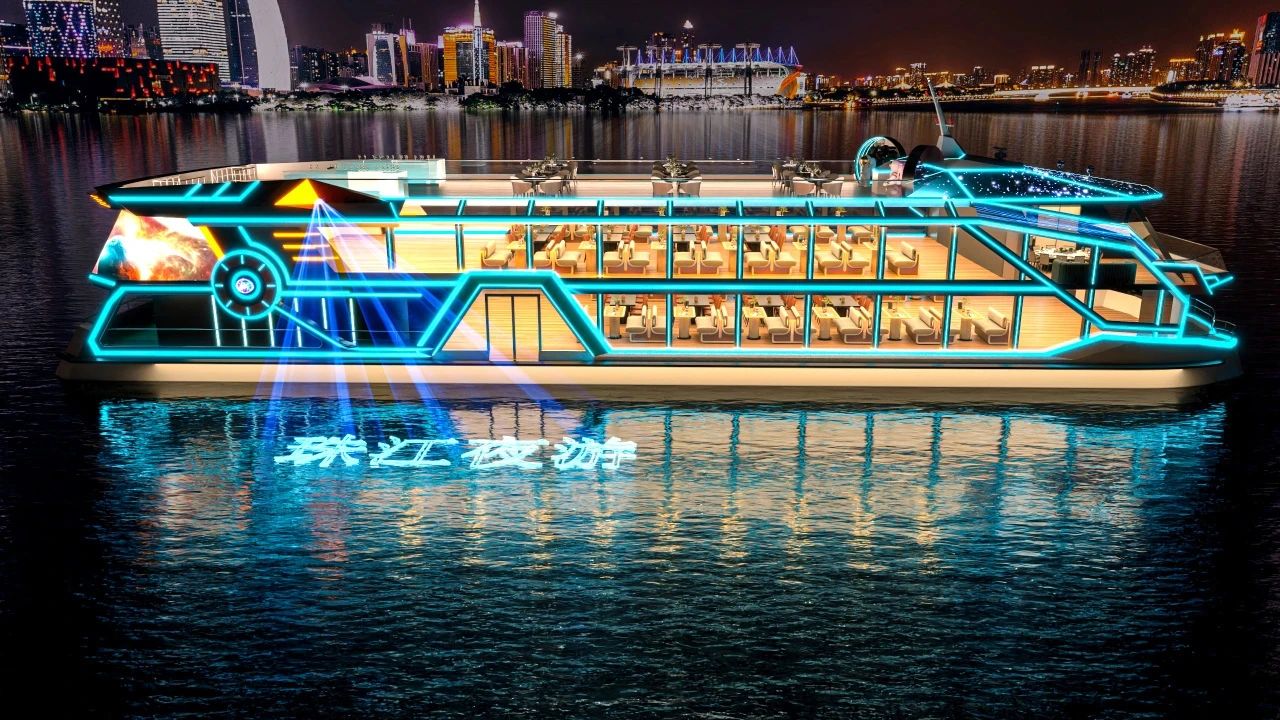 廣州首艘全息投影造型新能源游覽船開工,珠江夜游新標桿船舶問世!