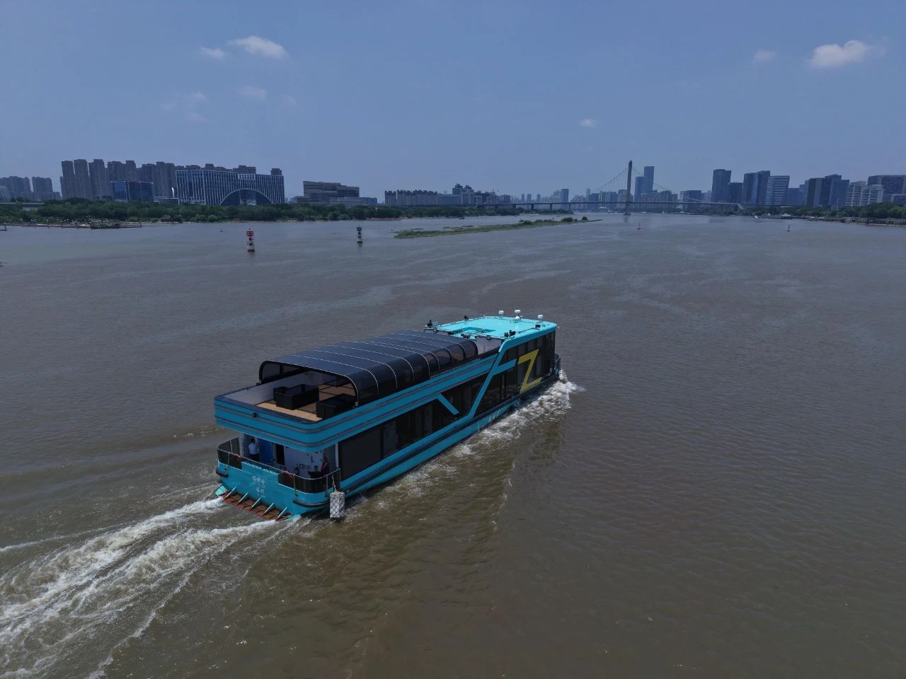 由福州市兩江四岸客運有限公司出資、湖南海荃游艇有限公司建造的20.8m游船,整個系統(tǒng)配置共接入2組鋰電池組,每組容量179.6kWh,整船鋰電池容量共計359.2kWh。經過集中式的直流變頻電控設備進行并網,驅動2臺50kW的主推電機,電控系統(tǒng)搭載中船賽思億自主知識產權產品。建成后將投入到兩江四岸旅游觀光服務,目前,賽思億已為船東福州市兩江四岸客運有限公司的4艘純電動船舶提供動力系統(tǒng)服務。