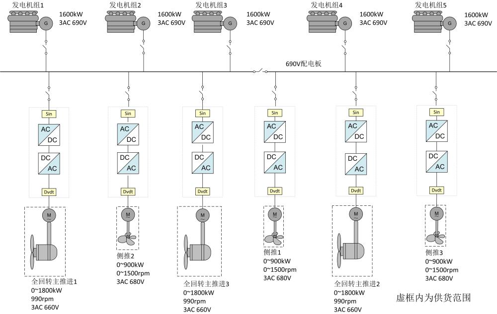 賽思億為1200T海上風(fēng)電安裝船提供的電力推進(jìn)系統(tǒng)主要包括:3臺艏側(cè)推變頻器、3臺艉推進(jìn)變頻器、3臺艏側(cè)推電機(jī)和3臺艉側(cè)推電機(jī)、舵槳和遙控等。 賽思億核心變頻器具有CCS、RINA、BV三大船級社型式認(rèn)證,已廣泛應(yīng)用于直流組網(wǎng)電力推進(jìn)、交流組網(wǎng)電力推進(jìn)、軸帶混合動力和岸電變頻電源等場景中,該風(fēng)電施工平臺是國產(chǎn)變頻在海上風(fēng)電領(lǐng)域的再次應(yīng)用。
